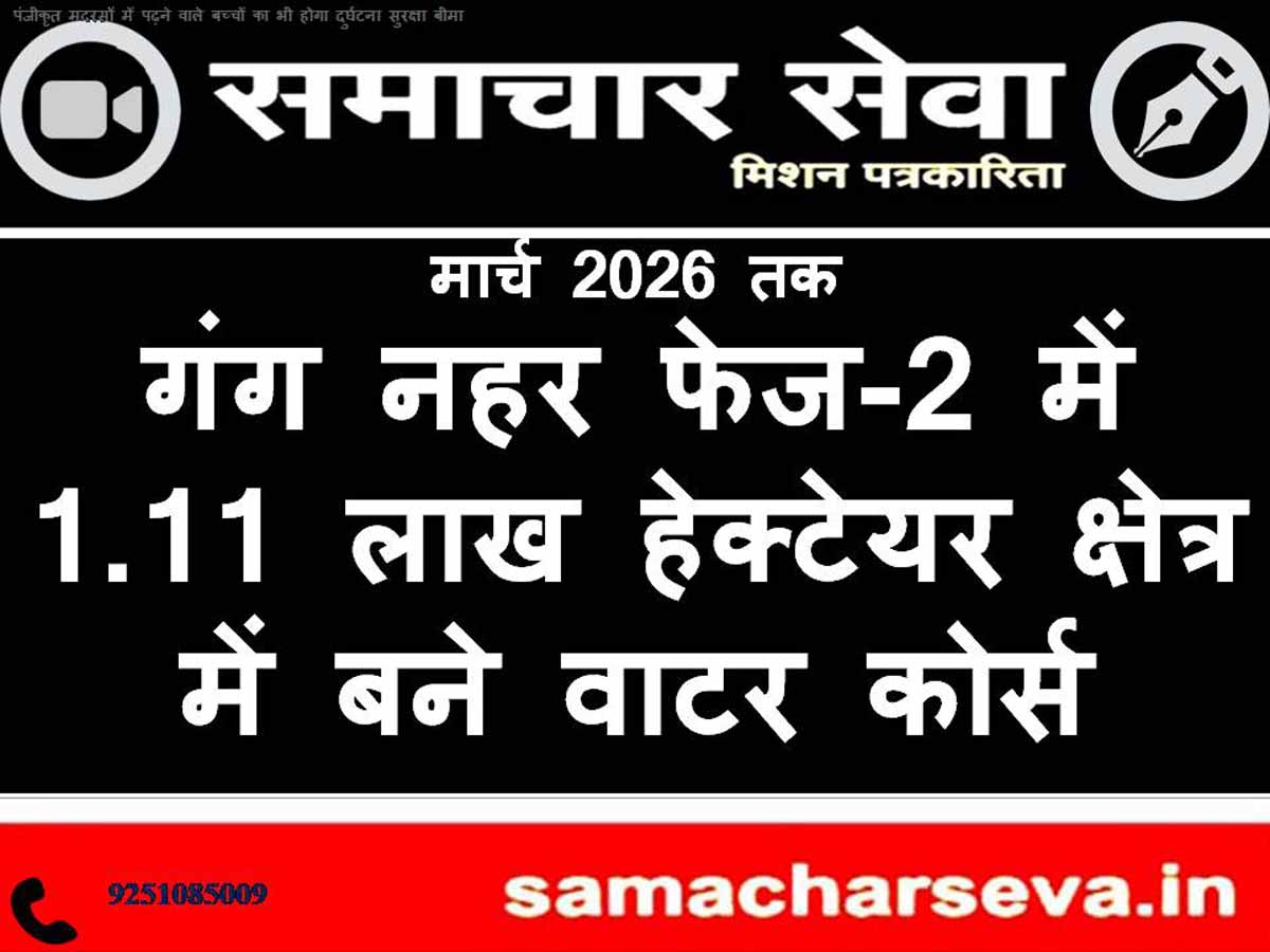 मार्च 2026 तक गंग नहर फेज-2 में 1.11 लाख हेक्टेयर क्षेत्र में बने वाटर कोर्स