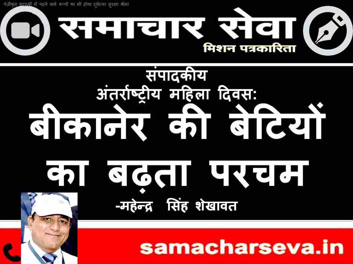 MAHENDRA SIINGH SHEKHAWAT बीकानेर, (समाचार सेवा)। हर वर्ष 8 मार्च को मनाया जाने वाला अंतरराष्ट्रीय…